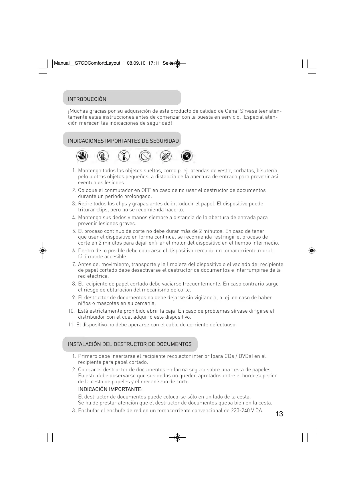 S7 CD - Trituradora de documentos GEHA - Manual de uso y guía de instrucciones gratis
