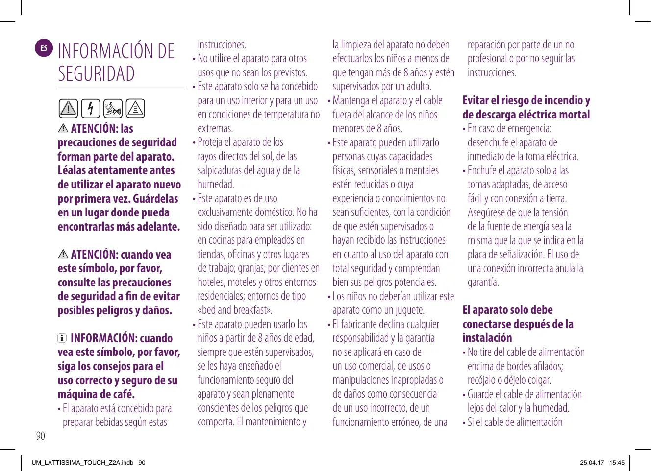 INFORMACIÓN: cuando vea este símbolo, por favor, siga los consejos para el uso correcto y seguro de su máquina de café.