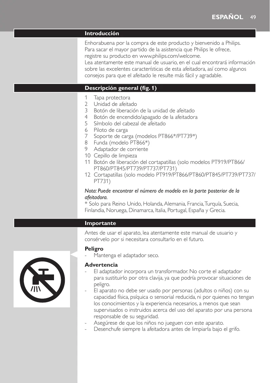 Lea atentamente este manual de usuario, en el cui encontrará información sobre las excellentes caracteristicas de esta afeitadora, como como algunos consejos para que el afeitado le的结果 más fácil y agradable.
