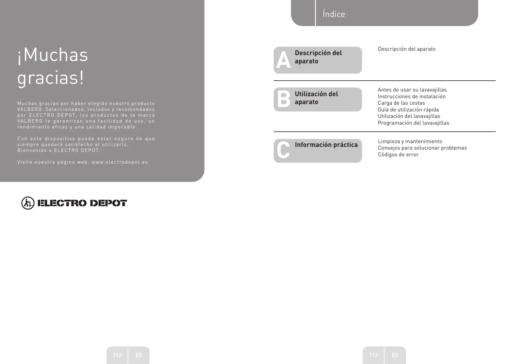 Utilización del aparato Antes de usar su lavavajillas Instrucciones de instalación Carga de las cestas Guía de utilización rápida Utilización del lavavajillas Programación del lavavajillas