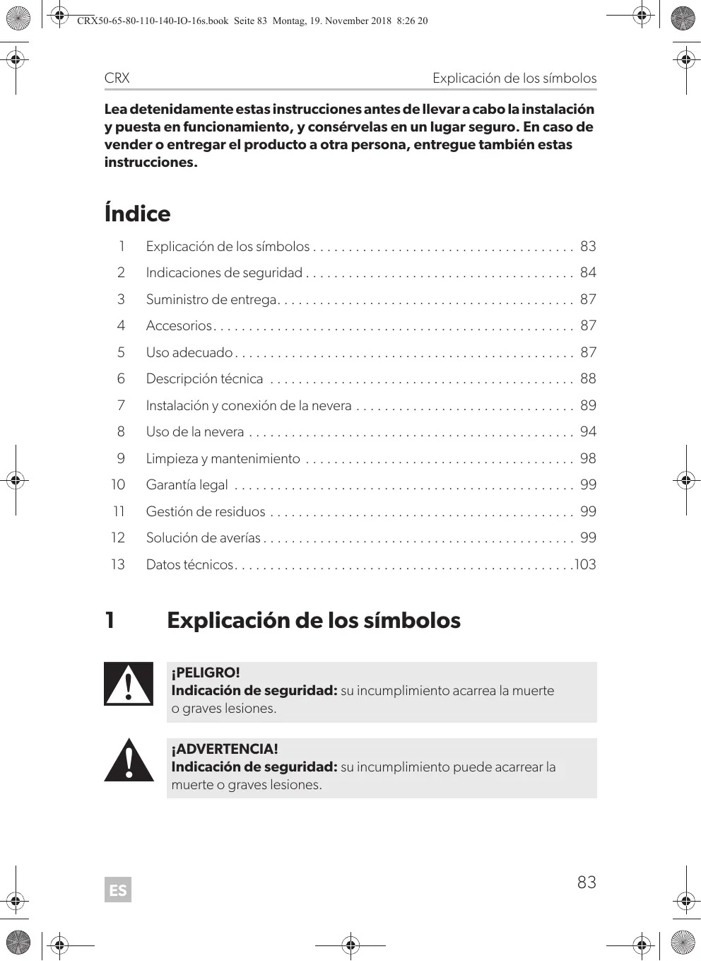 Explicación de los símbolos . . . . . . . . . . . . . . . . . . . . . . . . . . . . . . . . . . . . . 83