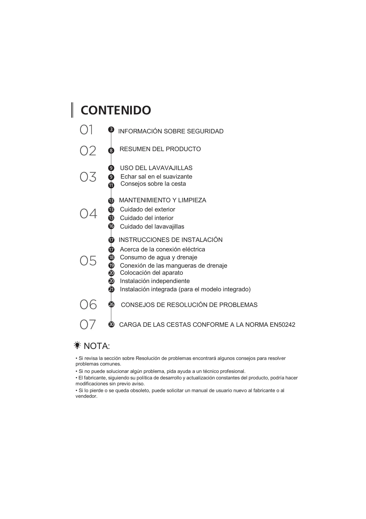 • Si no puede solucionar algún problema, pida ayuda a un técnico profesional.