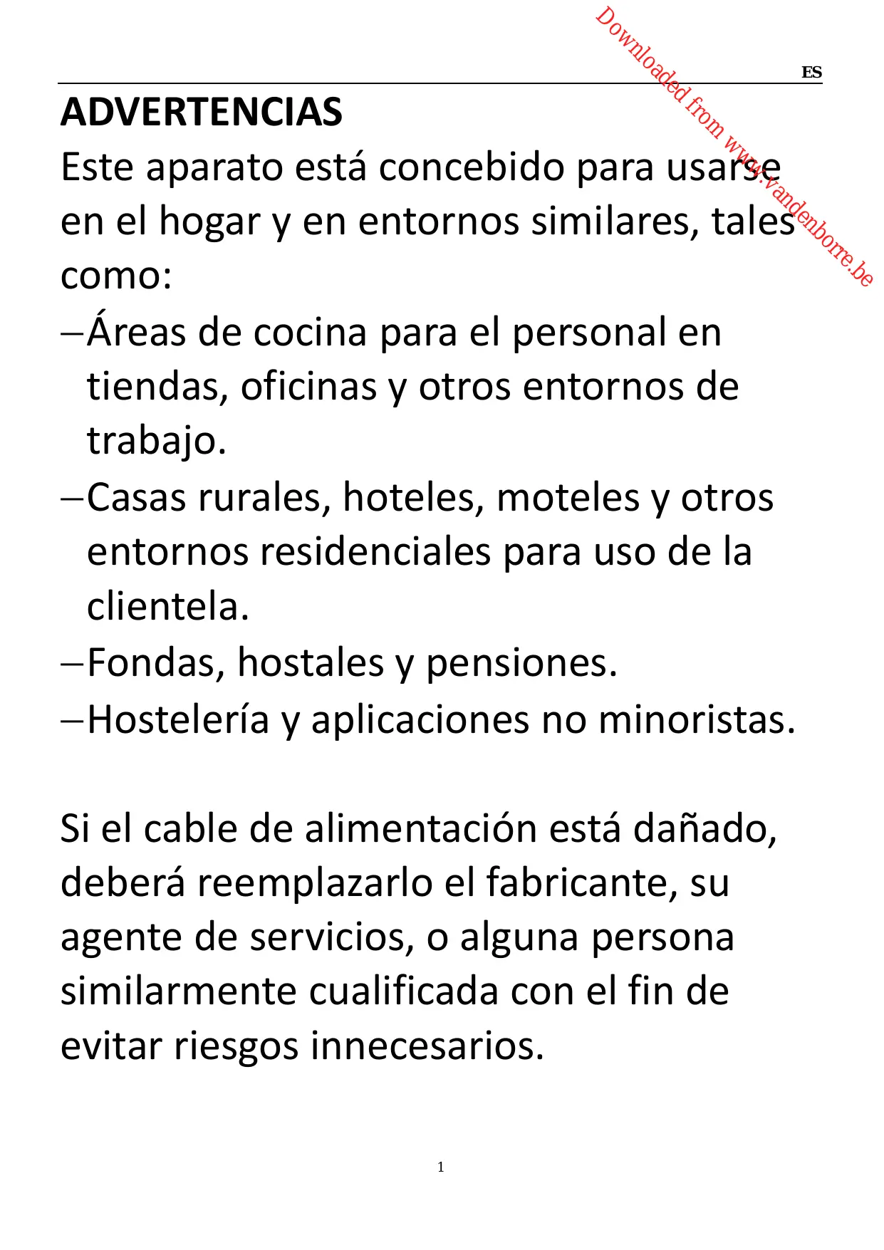 MANUAL DE INSTRUCCIONES ADVERTENCIAS Este aparato está concebido para usarse en el hogar y en entornos similares, tales como: