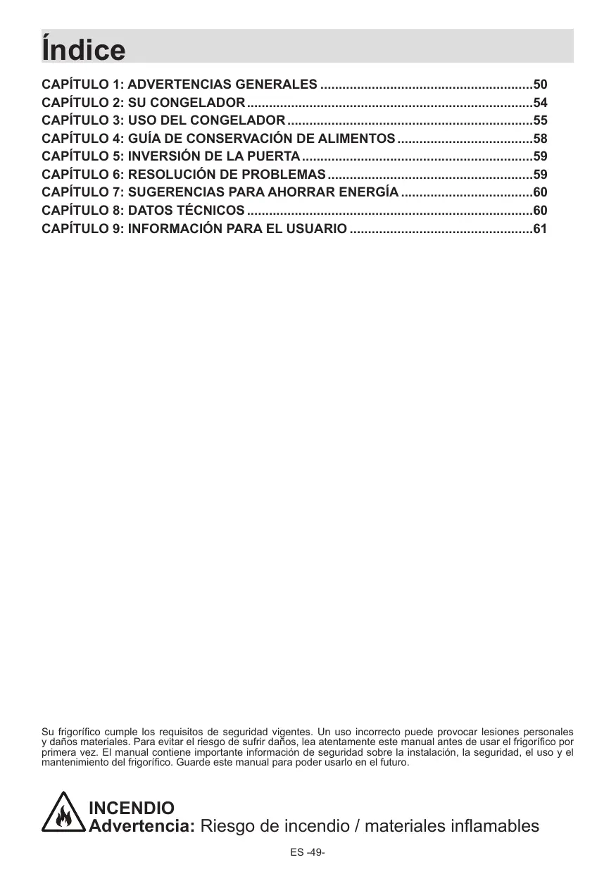 CAPÍTULO 1: ADVERTENCIAS GENERALES Antes de usar el congelador