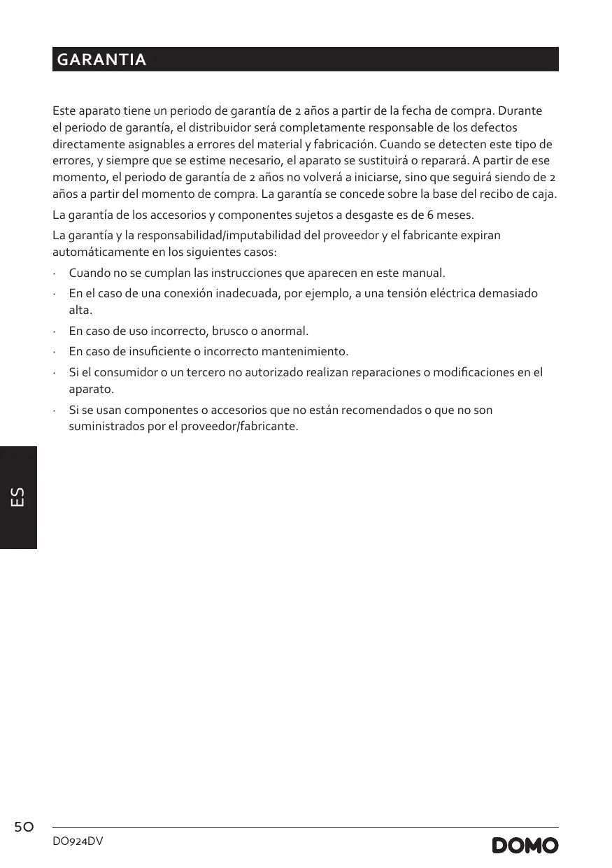 - · Asegúrese de insertar el enchufe en la toma de corriente. www.domo-elektro.be DO924DV