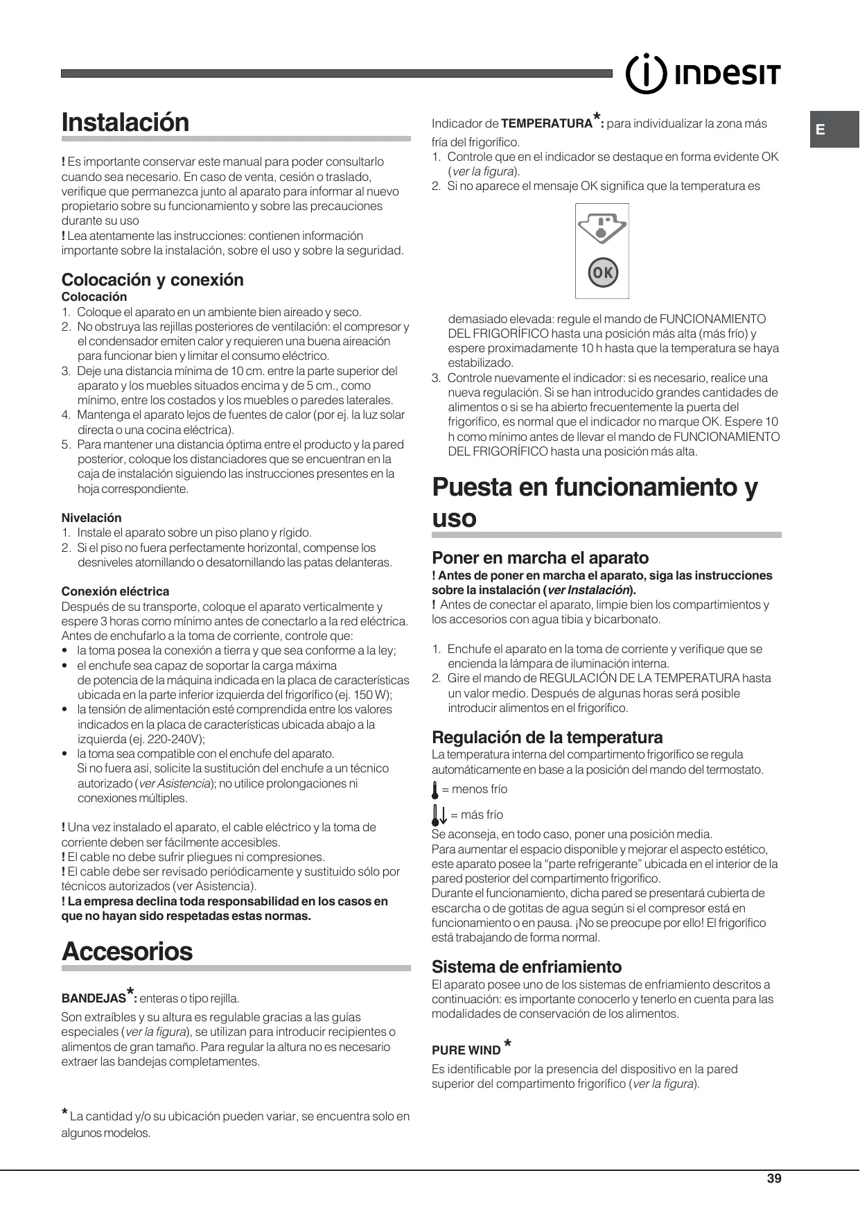 Descarga las instrucciones para tu Refrigerador combinado en formato PDF gratis! Encuentra tus instrucciones BIAA 12P - INDESIT y toma tu dispositivo electrónico nuevamente en la mano. En esta página están publicados todos los documentos necesarios para el uso de su dispositivo. BIAA 12P de la marca INDESIT.