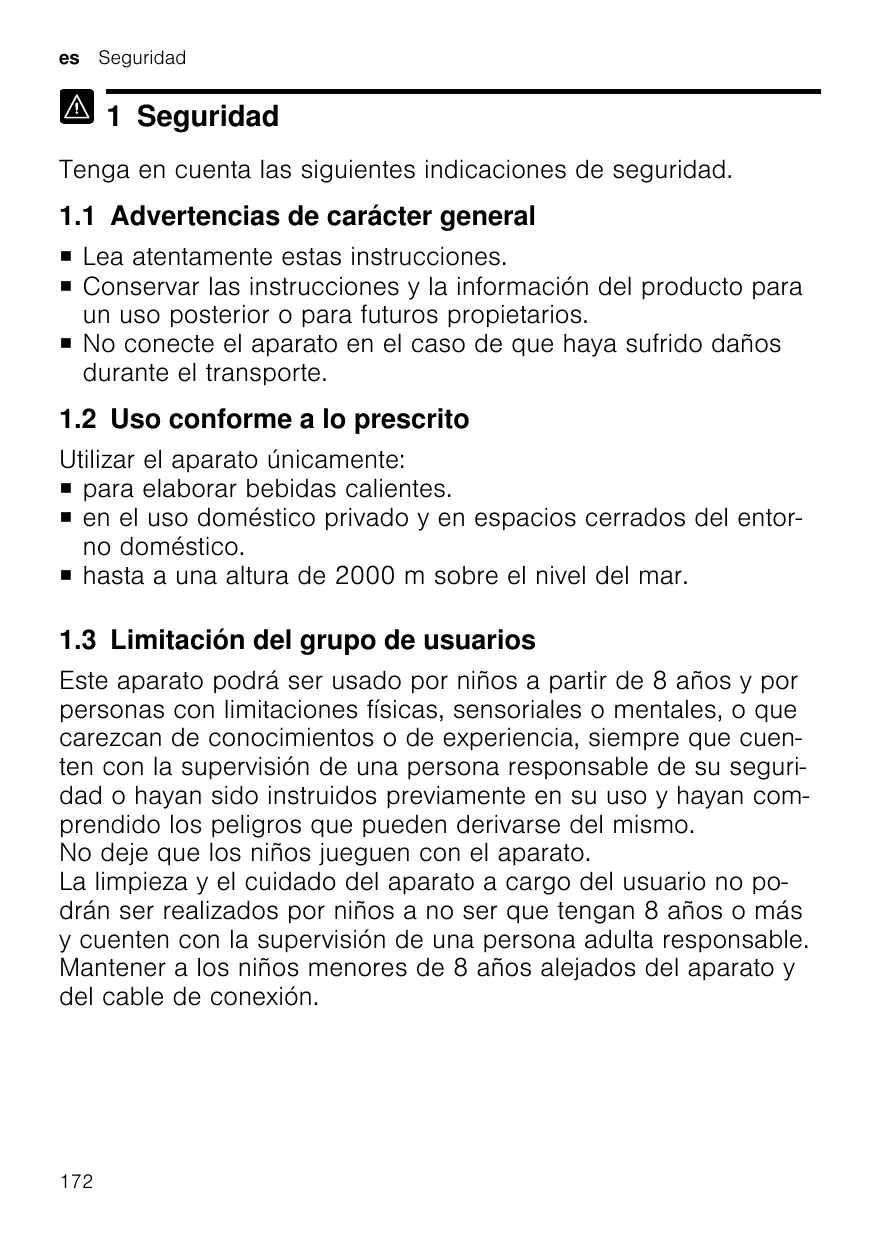 Utilizar el aparato únicamente: ¡ para elaborar bebidas calientes. ¡ en el uso doméstico privado y en espacios cerrados del entorno doméstico. ¡ hasta a una altura de 2000 m sobre el nivel del mar.