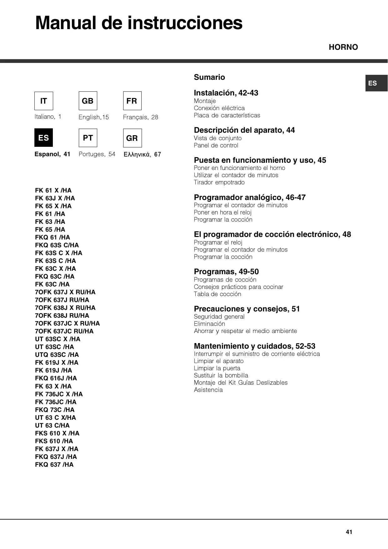 MANUAL DE USUARIO FKQ637JWHAS HOTPOINT