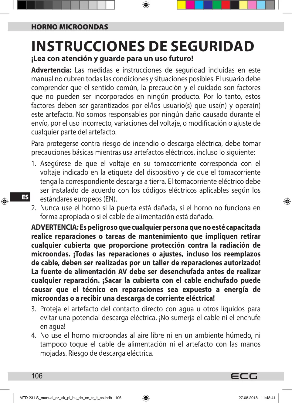 MTD 231 S - Microondas ECG - Manual de uso y guía de instrucciones gratis