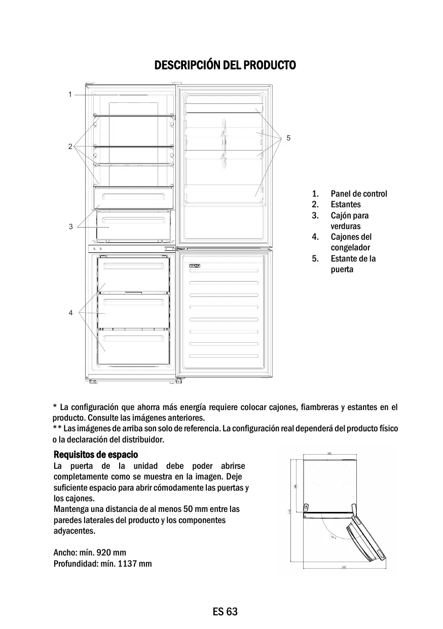 * La configuración que ahorra más energía requiere colocar cajones, fiambreras y estantes en el producto. Consulte las imágenes anteriores.