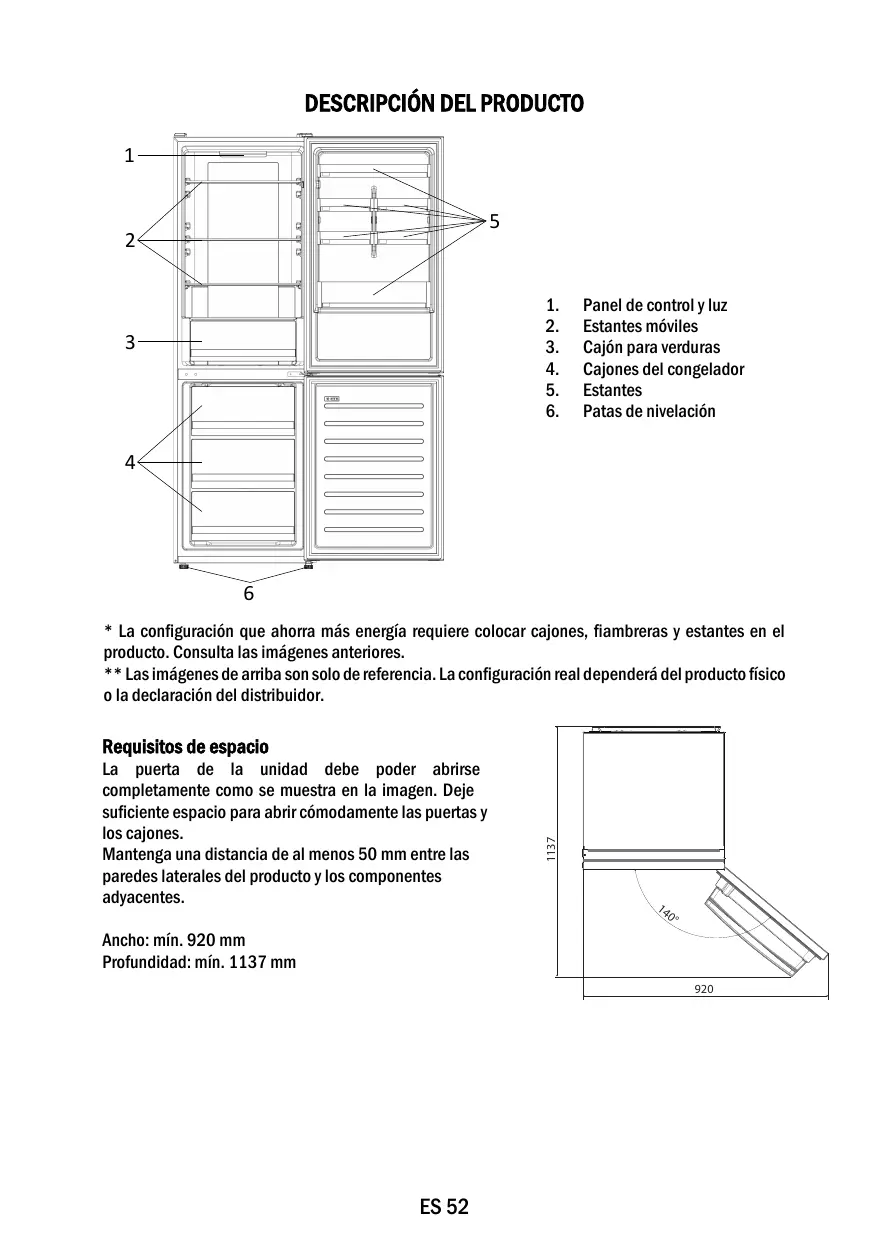 * La configuración que ahorra más energía requiere colocar cajones, fiambreras y estantes en el producto. Consulta las imágenes anteriores. ** Las imágenes de arriba son solo de referencia. La configuración real dependerá del producto físico o la declaración del distribuidor.