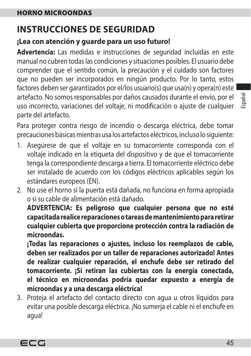 Este manual de instrucciones está disponible en el situ Web www.ecg-electro.eu.