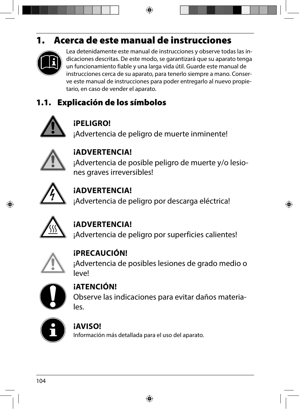 Lea detenidamente este manual de instrucciones y observe todas las indicaciones descritas. De este modo, se garantizará que su aparato tenga un funcionamiento fiable y una larga vida útil. Guarde este manual de instrucciones cerca de su aparato, para tenerlo siempre a mano. Conserve este manual de instrucciones para poder entregarlo al nuevo propietario, en caso de vender el aparato.