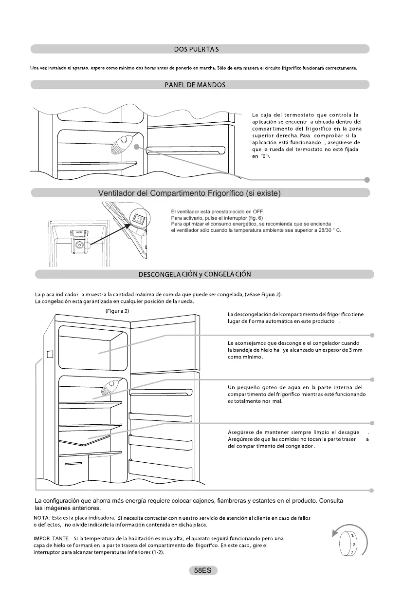 •Se sugiere ajustar la temperatura a 4°C en el compartimento del frigorífico y, si es posible, a -18°C en el compartimento del congelador.
