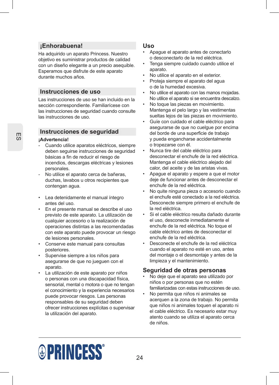 ¡Enhorabuena! Ha adquirido un aparato Princess. Nuestro objetivo es suministrar productos de calidad con un diseño elegante a un precio asequible. Esperamos que disfrute de este aparato durante muchos años.