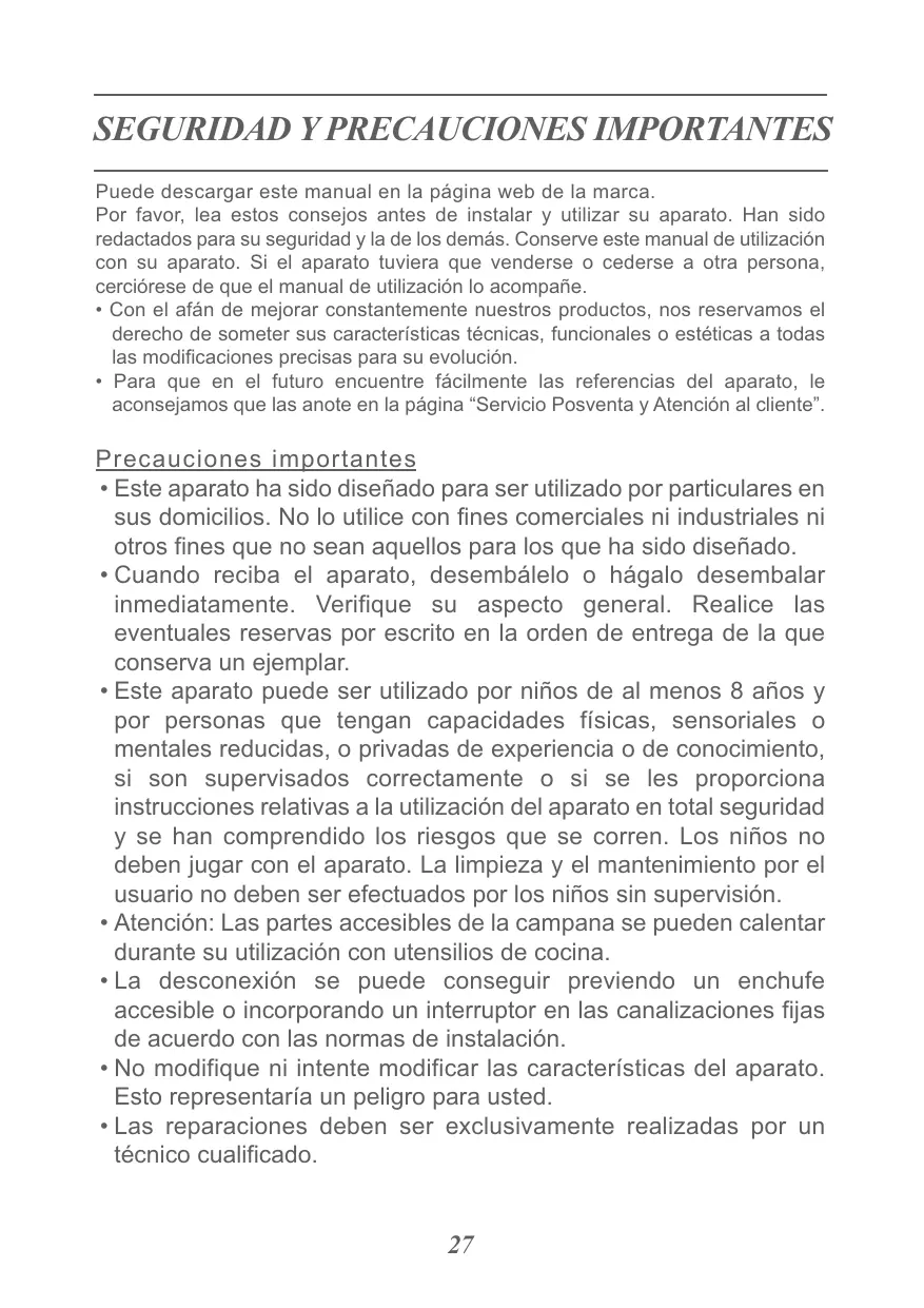 - Desconecte siempre la campana antes de proceder a su limpieza o mantenimiento.