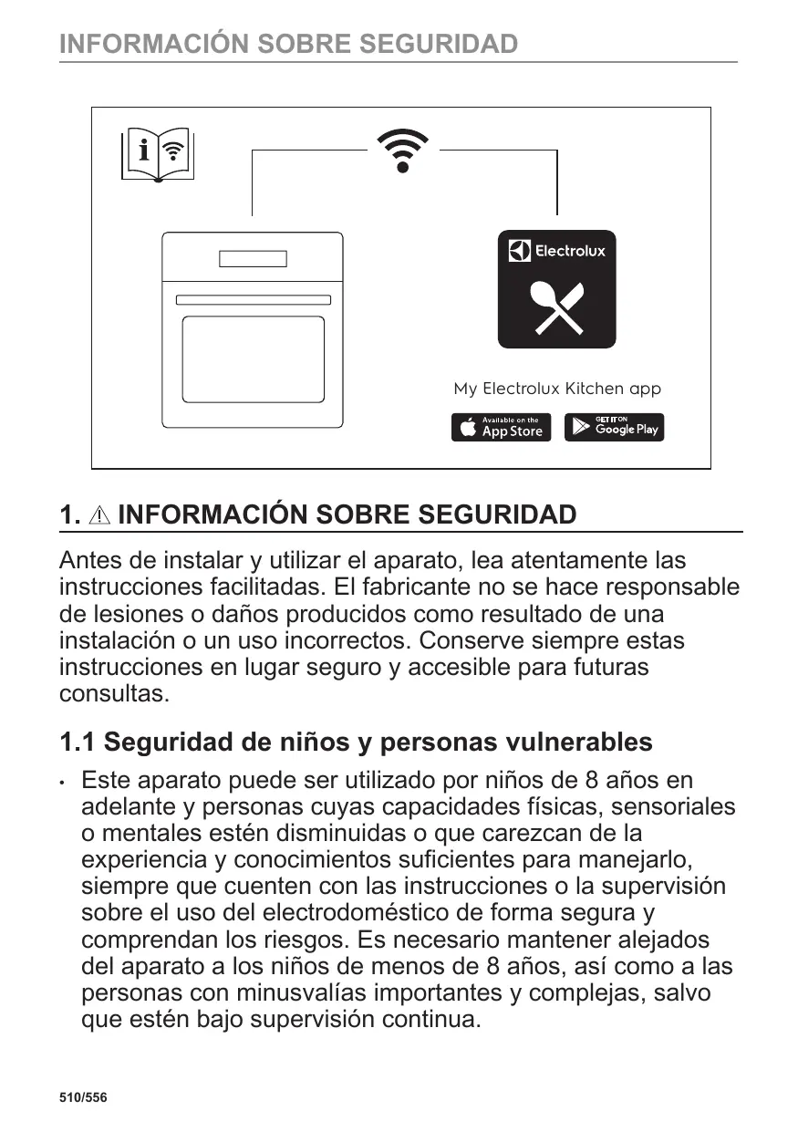 1. INFORMACIÓN SOBRE SEGURIDAD... 510 1.1 Seguridad de niños y personas vulnerables 510 1.2 Instrucciones generales de seguridad 511 2. INSTRUCCIONES DE SEGURIDAD 512