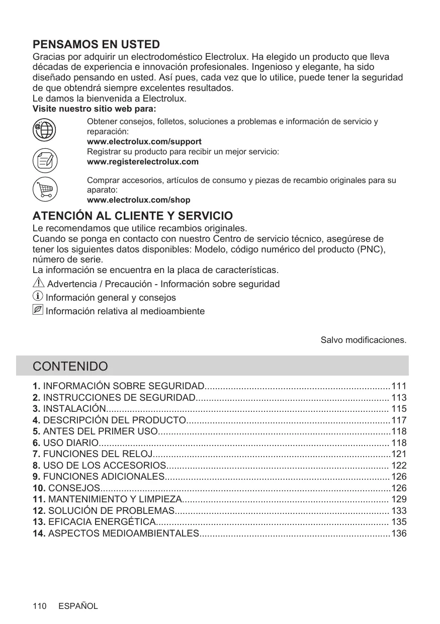 Registrar su producto para recibir un mejor servicio: www.registerelectrolux.com Comprar accesorios, artículos de consumo y piezas de recambio originales para su aparato: www.electrolux.com/shop