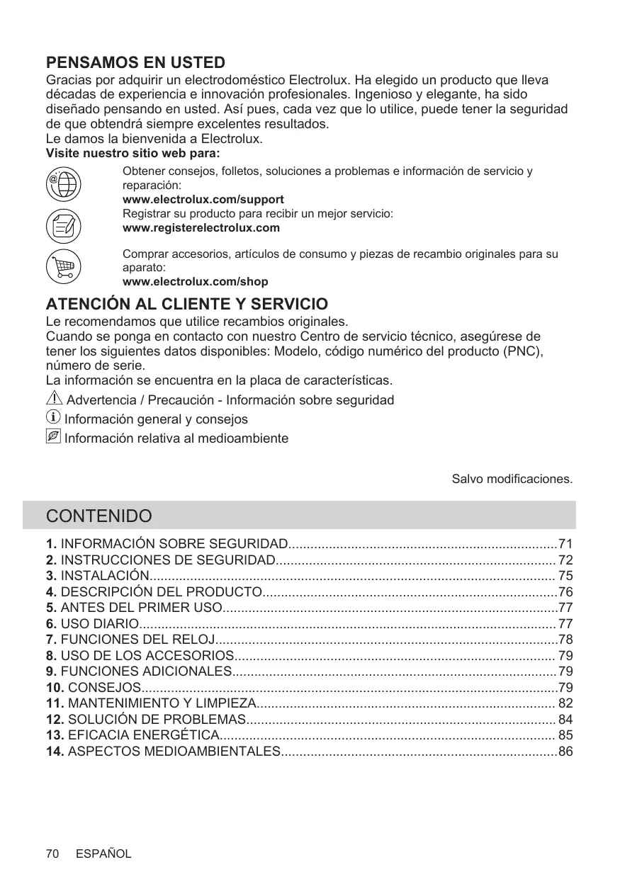 Registrar su producto para recibir un mejor servicio: www.registerelectrolux.com Comprar accesorios, artículos de consumo y piezas de recambio originales para su aparato: www.electrolux.com/shop