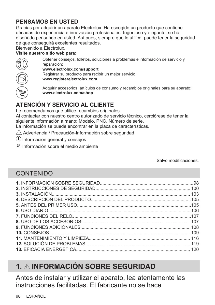 Gracias por adquirir un aparato Electrolux. Ha escogido un producto que contiene décadas de experiencia e innovación profesionales. Ingenioso y elegante, se ha diseñado pensando en usted. Así pues, siempre que lo utilice, puede tener la seguridad de que conseguirá excelentes resultados.