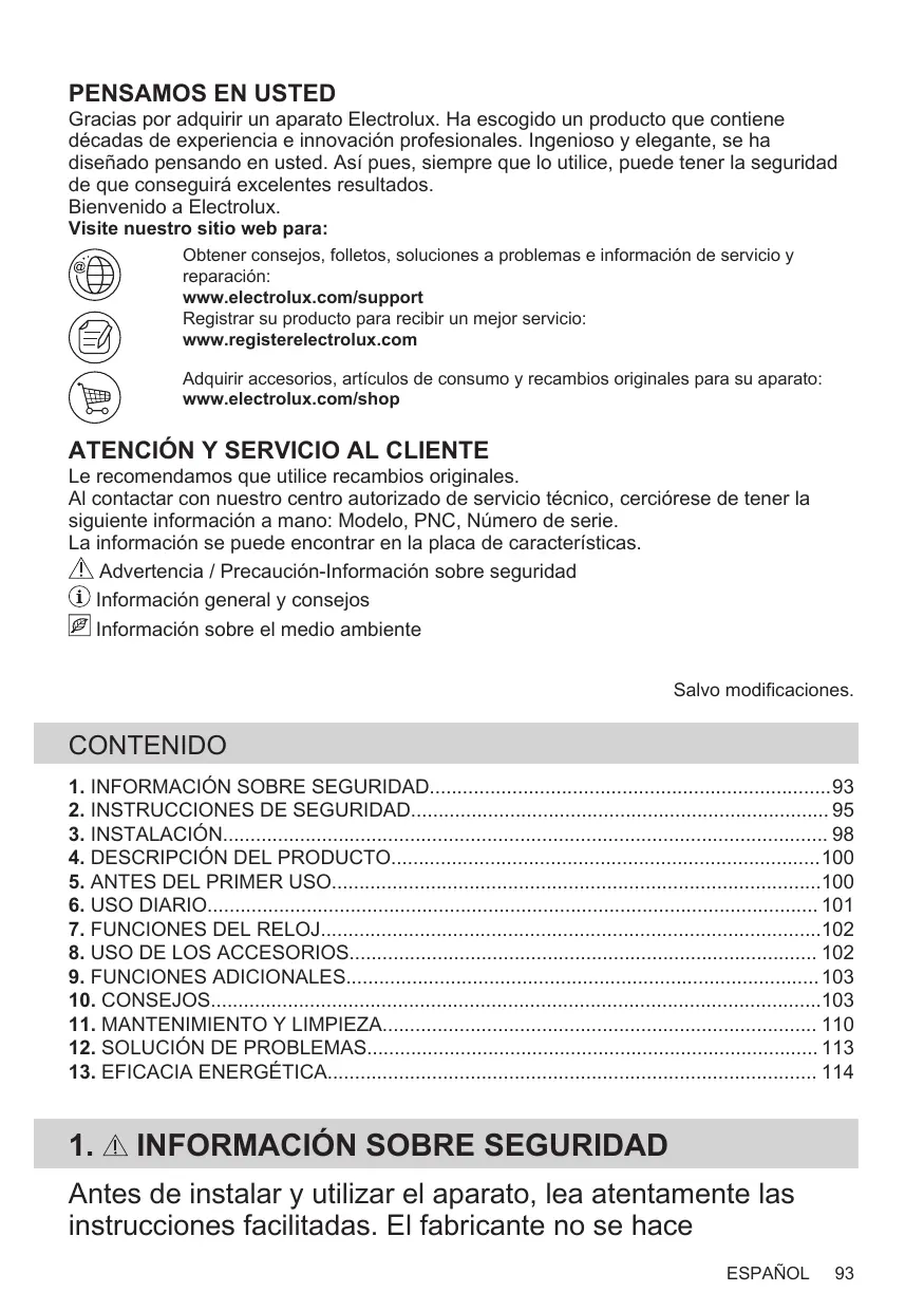 Le recomendamos que utilice recambios originales. Al contactar con nuestro centro autorizado de servicio técnico, cerciórese de tener la siguiente información a mano: Modelo, PNC, Número de serie. La información se puede encontrar en la placa de características. Advertencia / Precaución-Información sobre seguridad Información general y consejos Información sobre el medio ambiente Salvo modificaciones.
