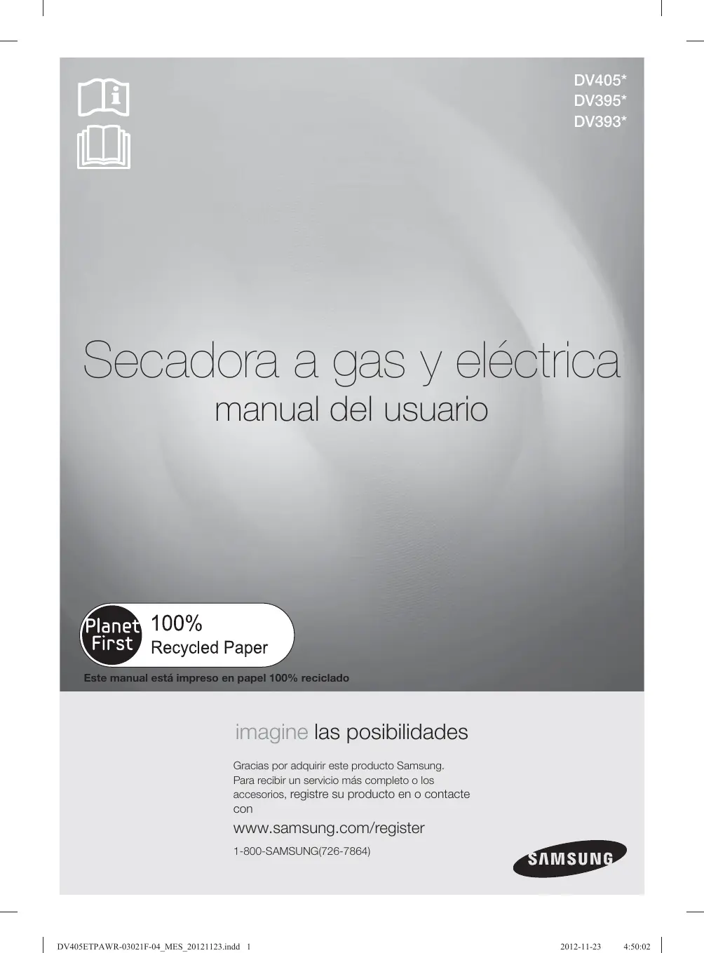 Secadora a gas y eléctrica manual del usuario Este manual está impreso en papel 100% reciclado imagine las posibilidades Gracias por adquirir este producto Samsung. Para recibir un servicio más completo o los accesorios, registre su producto en o contacte con características