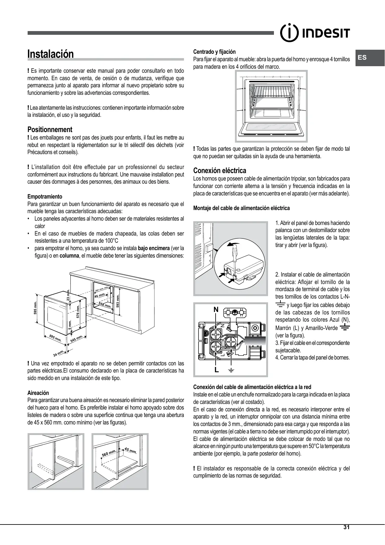 IF 63KA IX - Horno empotrado INDESIT - Manual de uso y guía de instrucciones gratis
