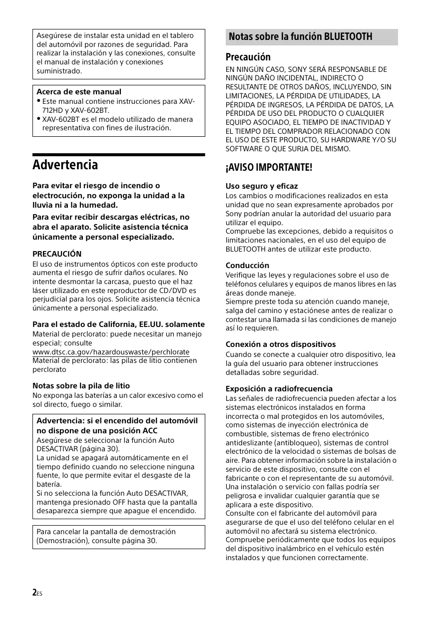 Este manual contiene instrucciones para XAV712HD y XAV-602BT. XAV-602BT es el modelo utilizado de manera representativa con fines de ilustración.