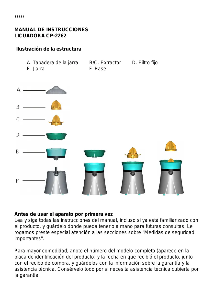 MANUAL DE INSTRUCCIONES LICUADORA CP-2262