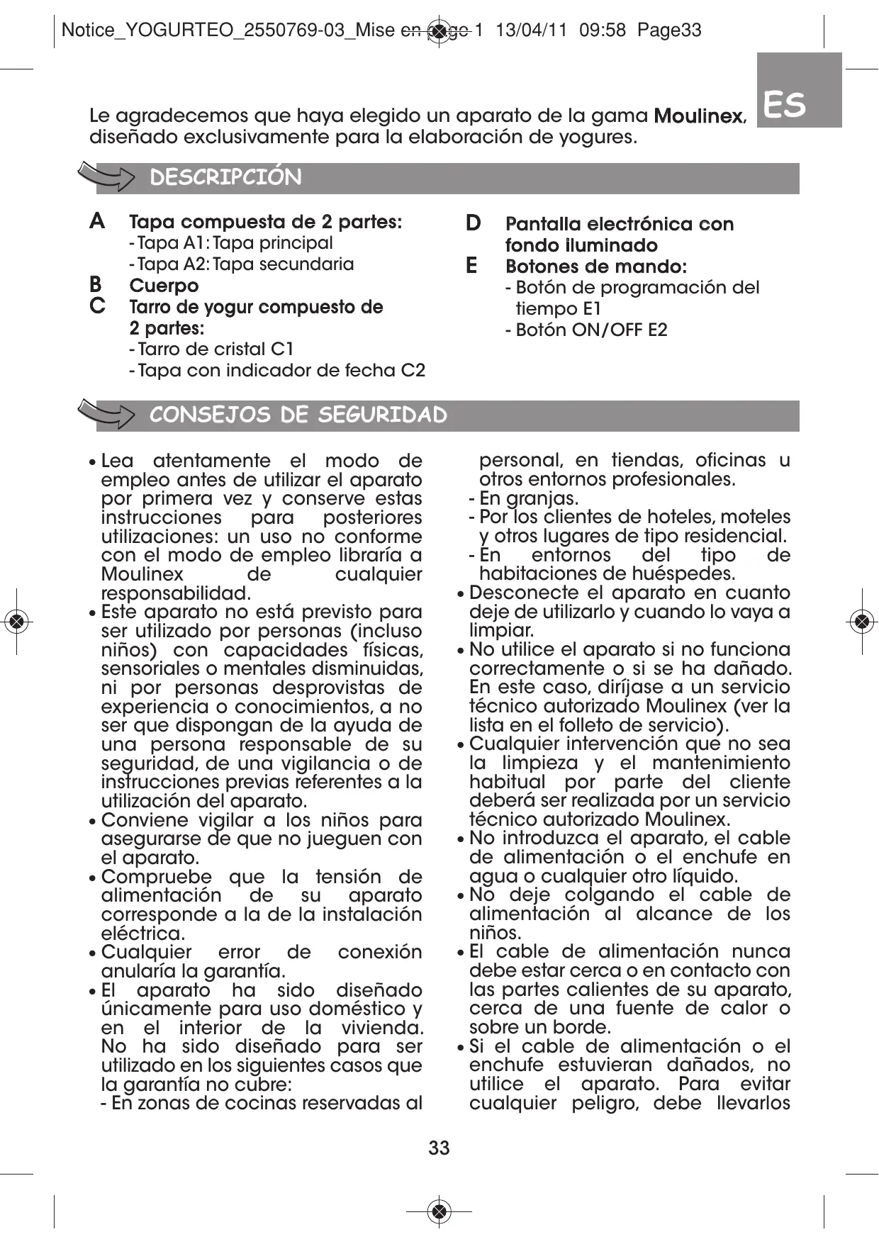 Le agradecemos que haya elegido un aparato de la gama Moulinex, diseñado exclusivamente para la elaboración de yogures.