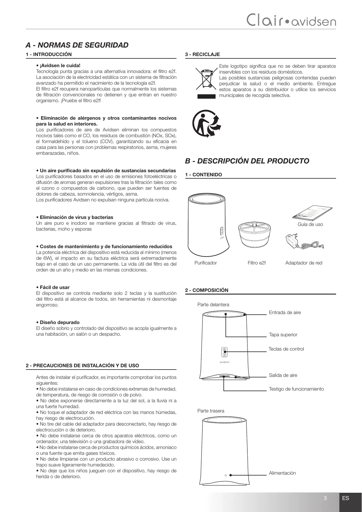 Encuentra gratis el manual del aparato CLAIR-X1 AVIDSEN en formato PDF.