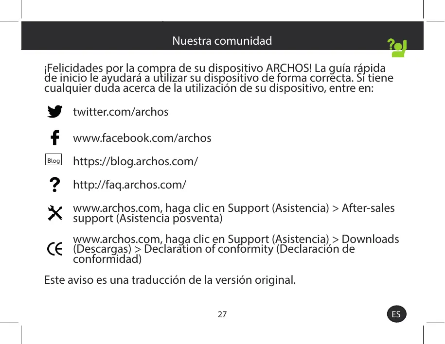 Descarga las instrucciones para tu Indefinido en formato PDF gratis! Encuentra tus instrucciones BOLT JR - ARCHOS y toma tu dispositivo electrónico nuevamente en la mano. En esta página están publicados todos los documentos necesarios para el uso de su dispositivo. BOLT JR de la marca ARCHOS.