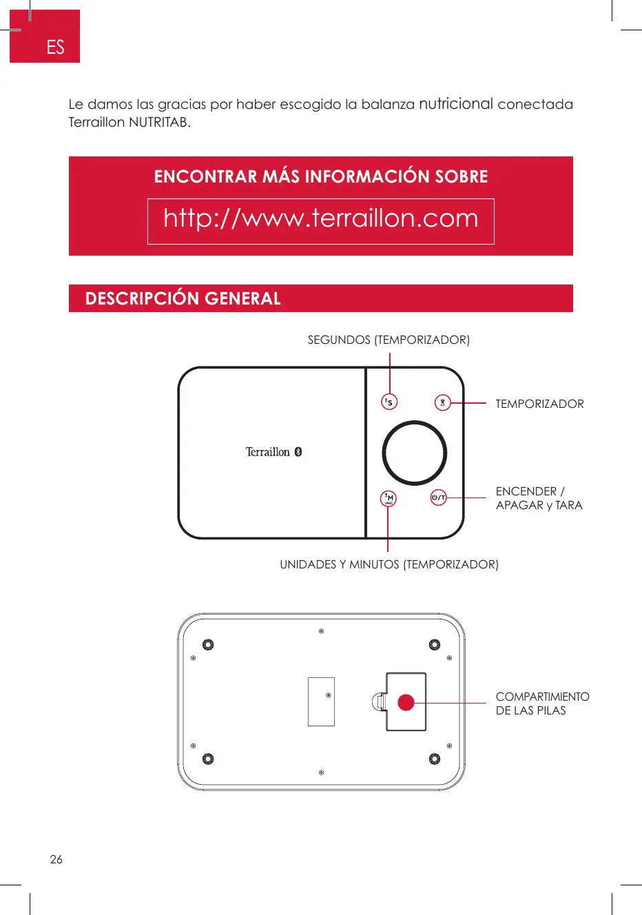 ES Le damos las gracias por haber escogido la balanza nutricional conectada Terraillon NUTRITAB.