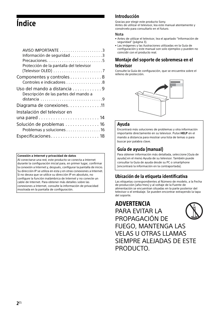 Información de seguridad . . . . . . . . . . . . . . . 3 Precauciones. . . . . . . . . . . . . . . . . . . . . . . . . . 5 Protección de la pantalla del televisor (Televisor OLED) . . . . . . . . . . . . . . . . . . . . . . . 7