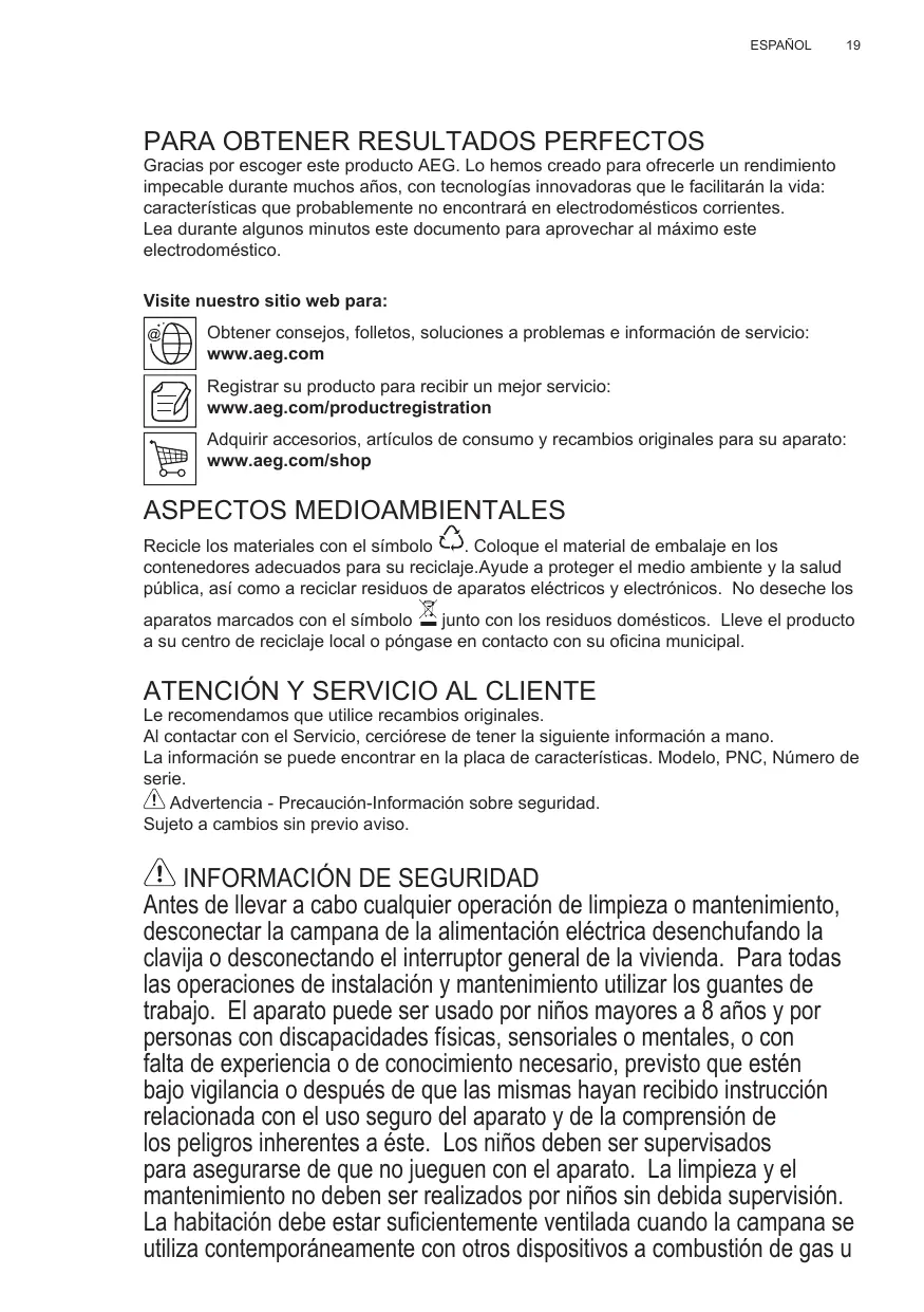 Gracias por escoger este producto AEG. Lo hemos createo para.Ofrecerle un rendimiento impecable durante muchos años, con technologías innovadoras que le facillarán la vida:characteristicas que probablemente no encontrará en electrodomesticos corrientes.