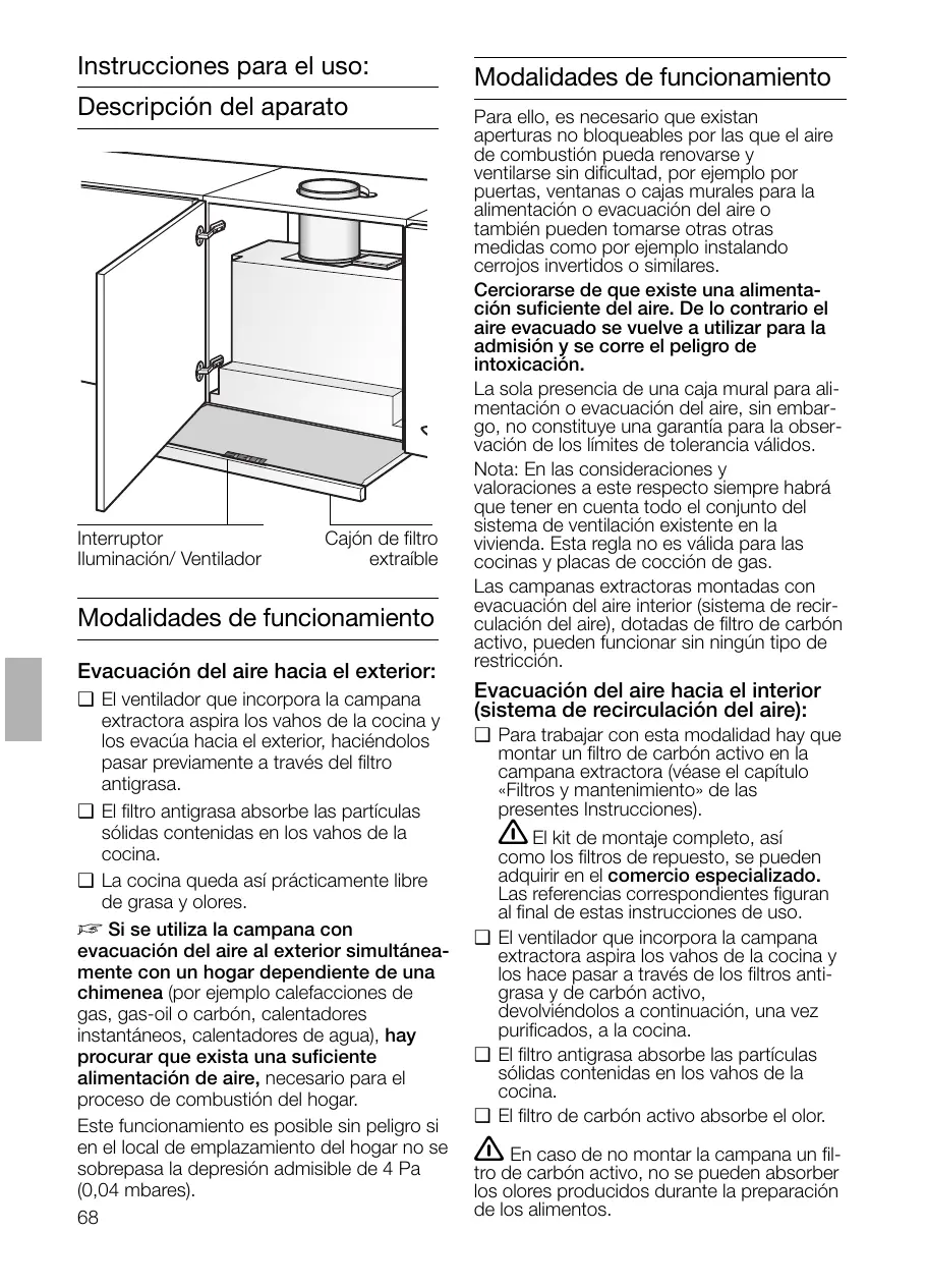| Funciones principales | Iluminación LED, filtro de grasa de aluminio, funcionamiento en modo extracción o recirculación |