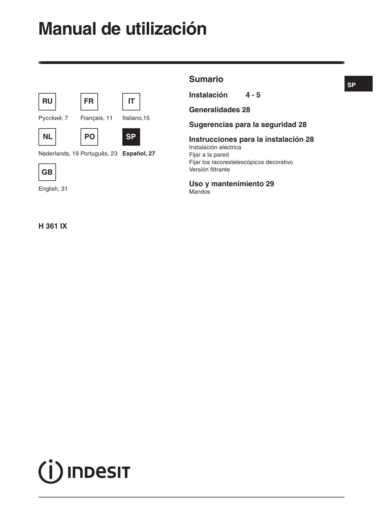 MANUAL DE USUARIO HIT761IX INDESIT
