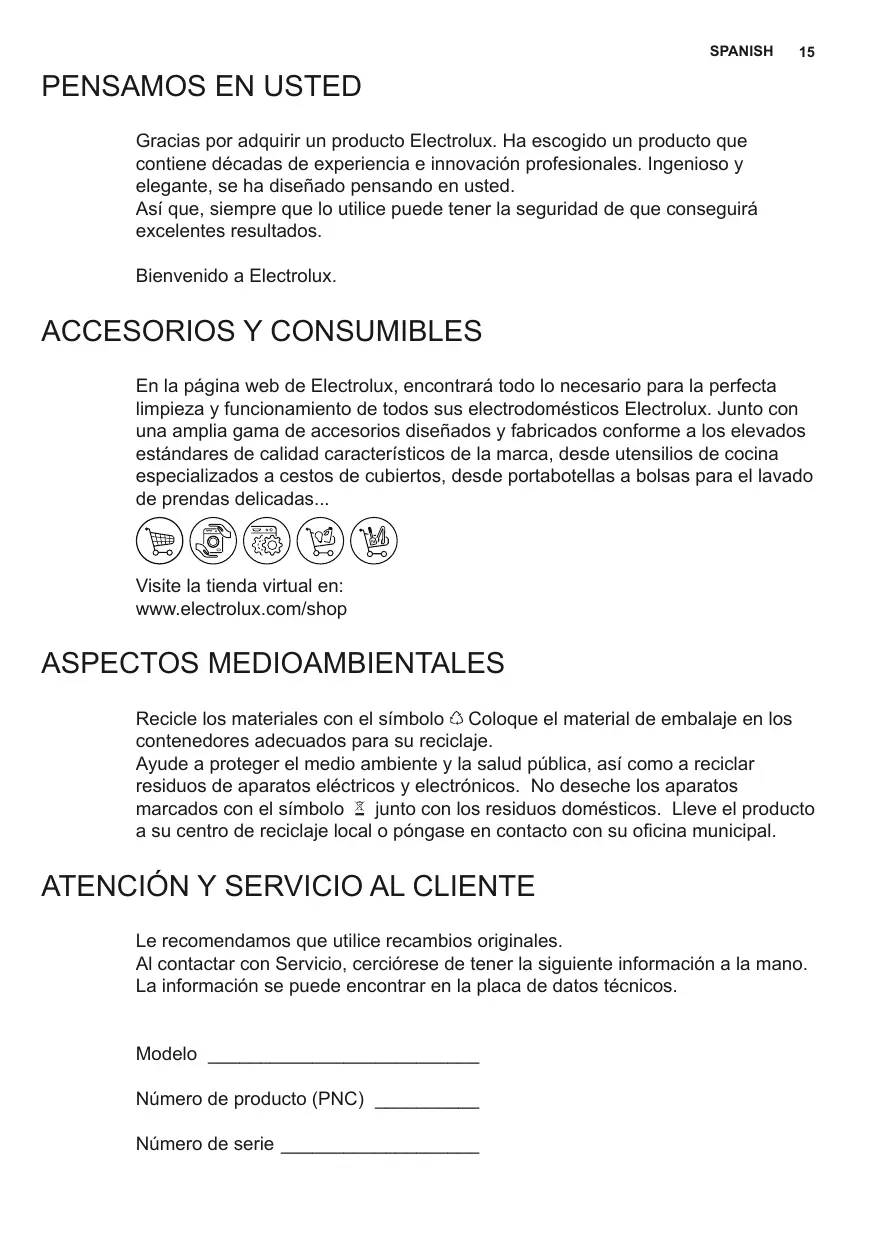 PENSAMOS EN USTED Gracias por adquirir un producto Electrolux. Ha escogido un producto que contiene décadas de experiencia e innovación profesionales. Ingenioso y elegante, se ha diseñado pensando en usted.