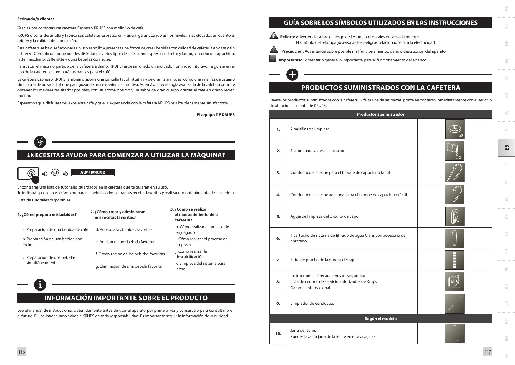 EN GUÍA SOBRE LOS SÍMBOLOS UTILIZADOS EN LAS INSTRUCCIONES Gracias por comprar una cafetera Espresso KRUPS con molinillo de café.