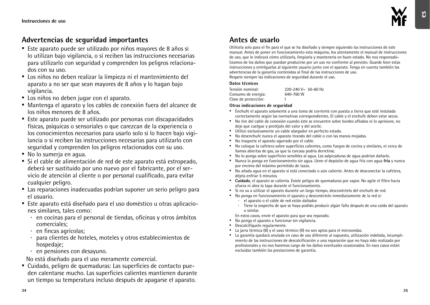 Encuentra gratis el manual del aparato KITCHENMINIS AROMA THERMO TO GO WMF en formato PDF.