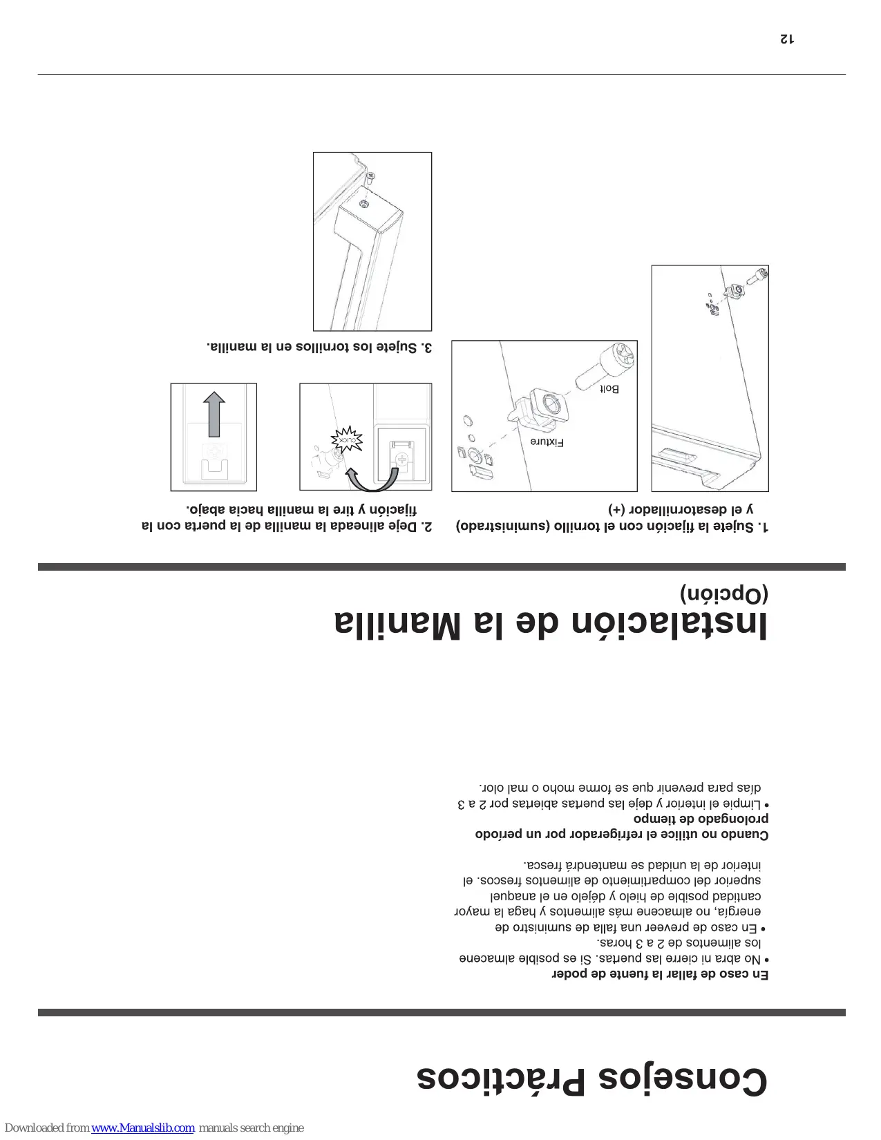 Consejos Prácticos En caso de fallar la fuente de poder los alimentos de 2 a 3 horas. energía, no almacene más alimentos y haga la mayor cantidad posible de hielo y déjelo en el anaquel superior del compartimiento de alimentos frescos. el interior de la unidad se mantendrá fresca. Cuando no utilice el refrigerador por un período prolongado de tiempo días para prevenir que se forme moho o mal olor.