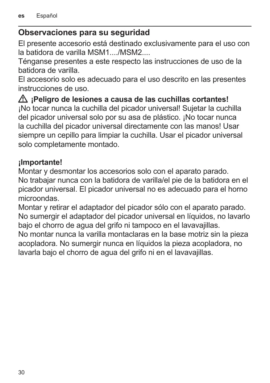 El presente accesorio está destinado exclusivamente para el uso con la batidora de varilla MSM1..../MSM2....