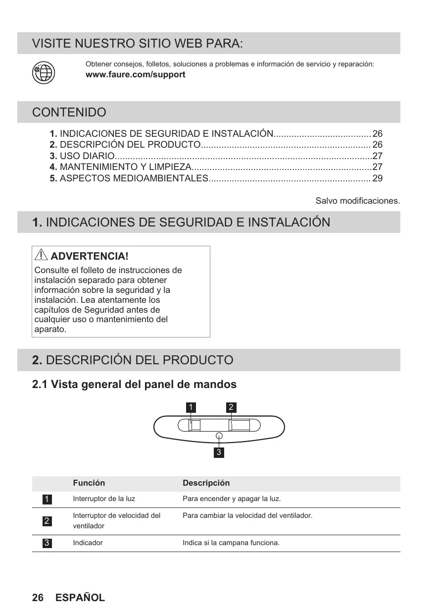 1. INDICACIONES DE SEGURIDAD E INSTALACIÓN ADVERTENCIA!