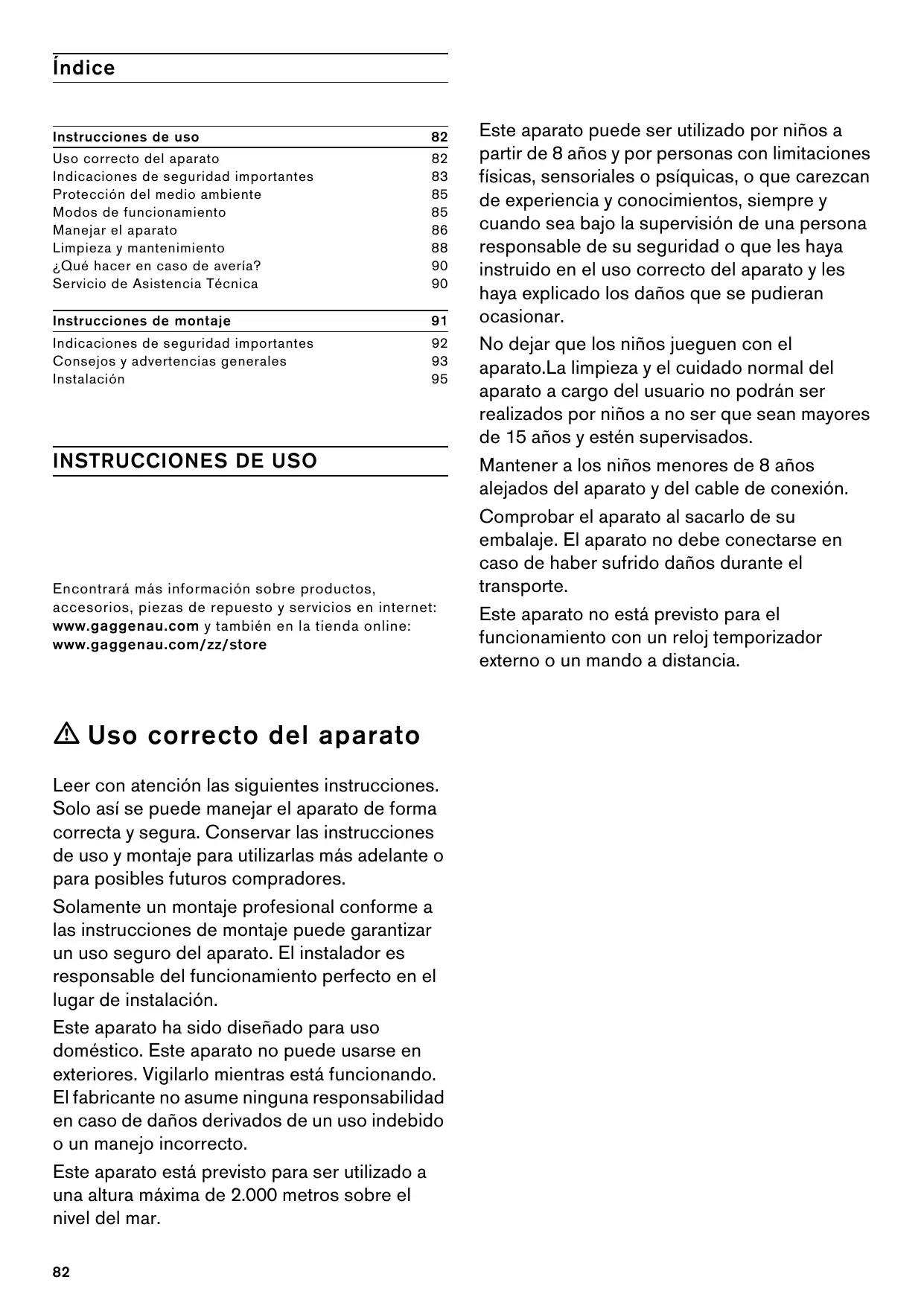 | Uso correcto del aparato | 82 |
