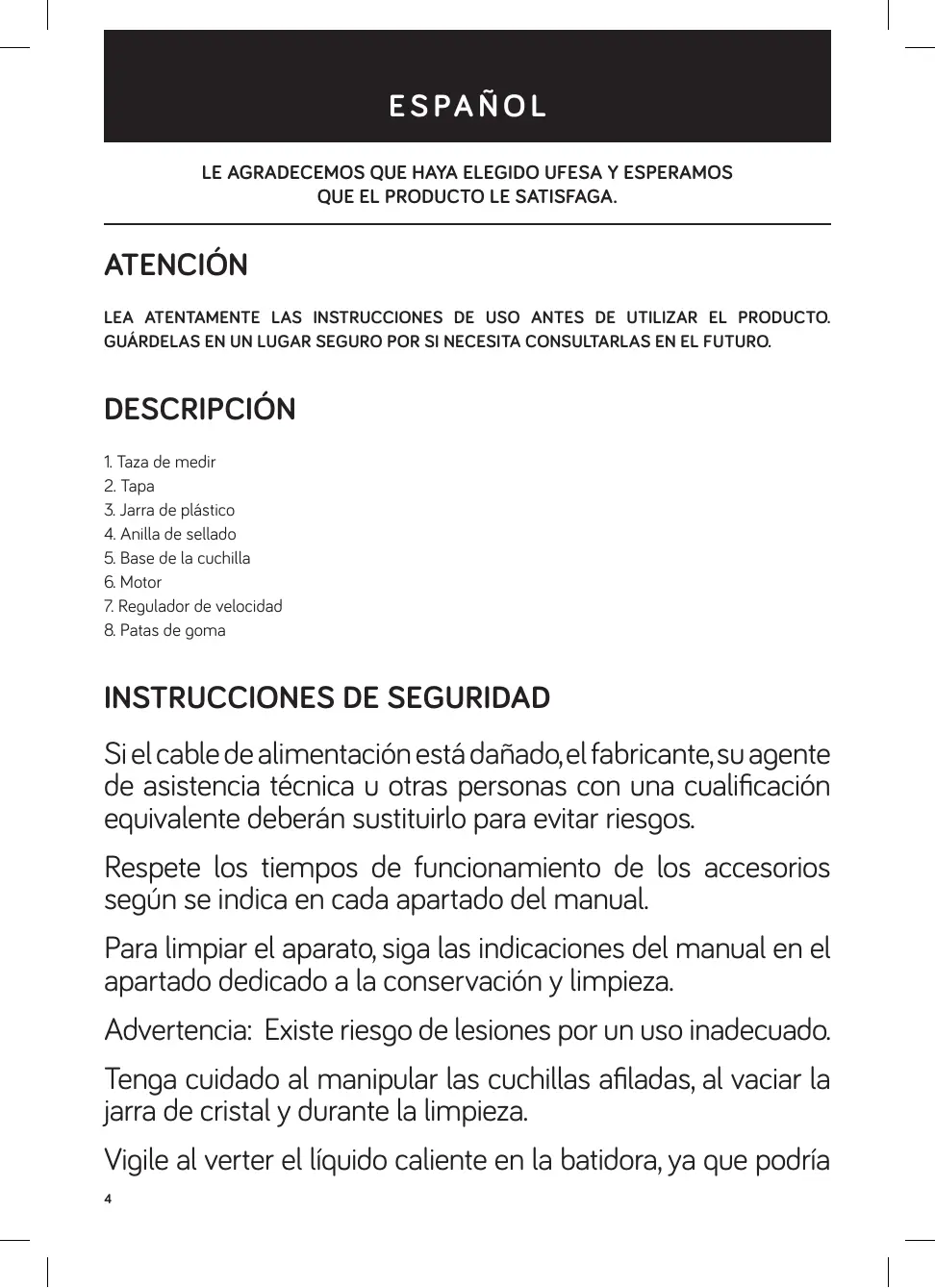 MANUAL DE USUARIO BS4707 UFESA