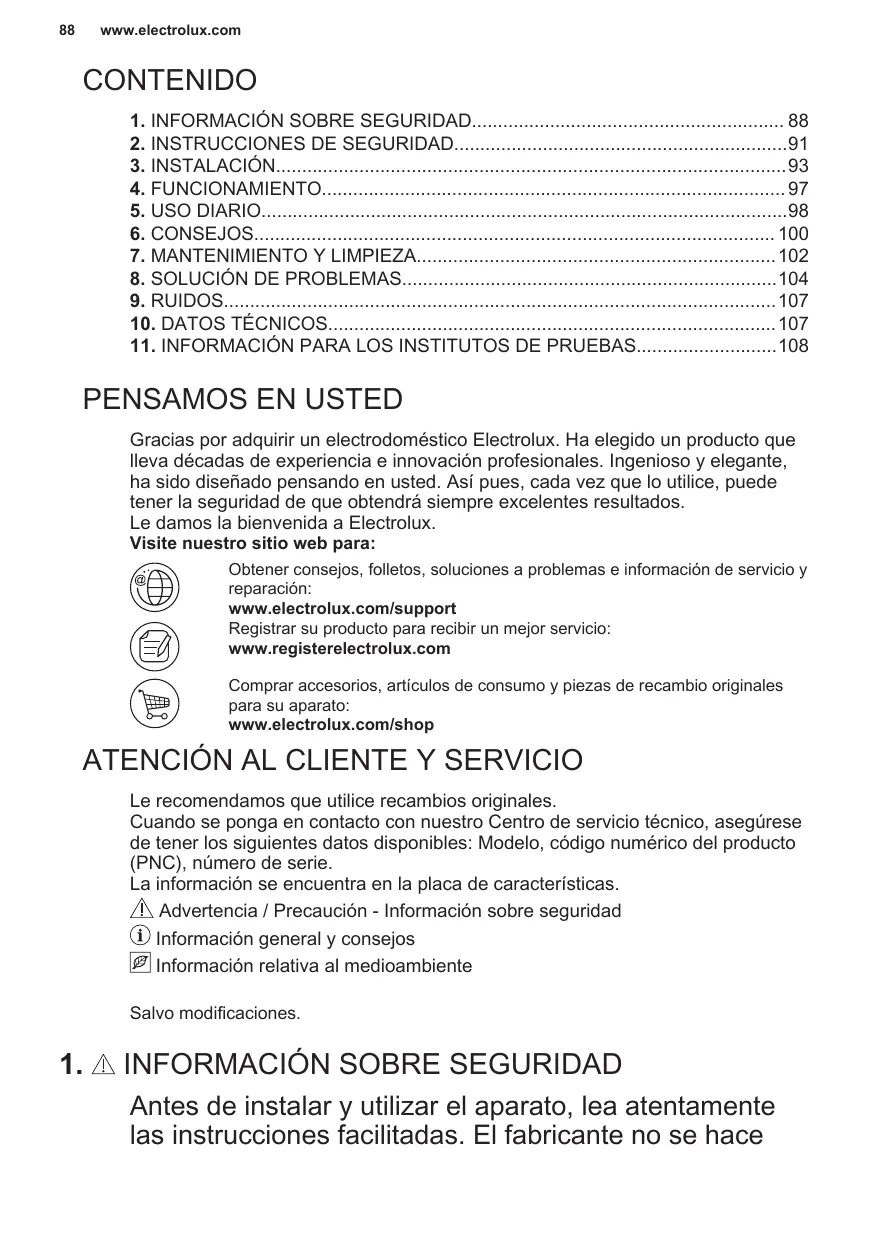 Registrar su producto para recibir un mejor servicio: www.registerelectrolux.com Comprar accesorios, artículos de consumo y piezas de recambio originales para su aparato: www.electrolux.com/shop