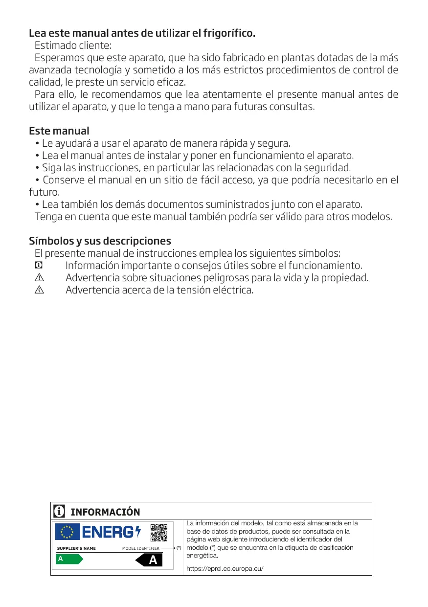 Lea este manual antes de utilizar el frigorífico.