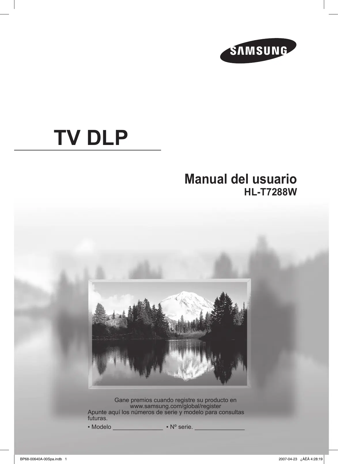 TV DLP Manual del usuario HL-T7288W Gane premios cuando registre su producto en www.samsung.com/global/register Apunte aquí los números de serie y modelo para consultas futuras.