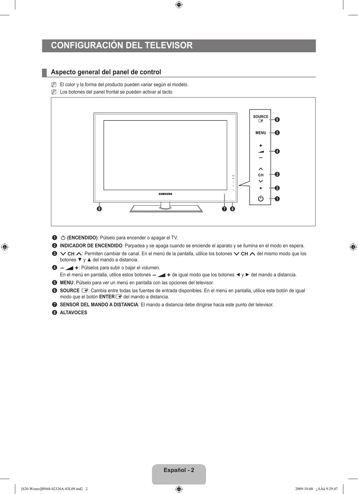 - Configuración del televisor ■ Aspecto general del panel de control p. 2