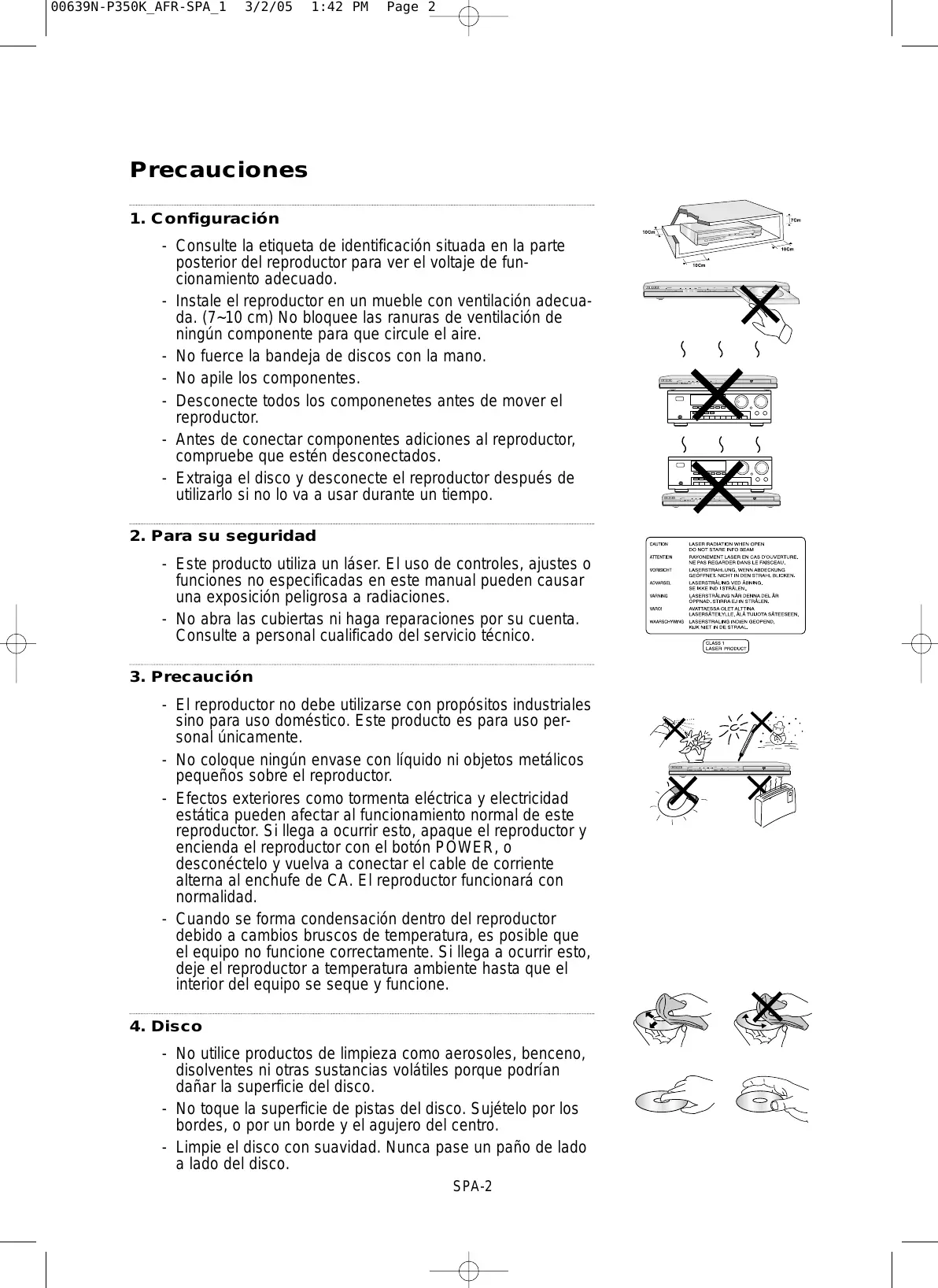- Este producto utiliza un láser. El uso de controles, ajustes o funciones no especificadas en este manual pueden causar una exposición peligrosa a radiaciones. - No abra las cubiertas ni haga reparaciones por su cuenta. Consulte a personal cualificado del servicio técnico.